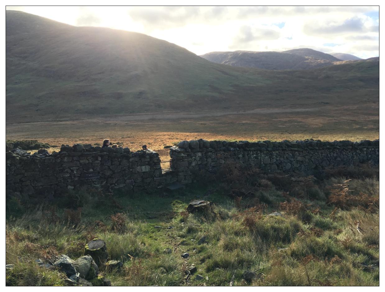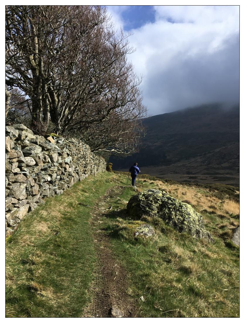 Cross to the open mountain and turn left along the track which follows outside the boundary wall.