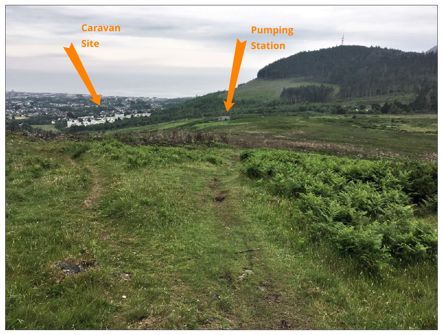 Follow the path for 300m to where it subtly splits with the left hand (less used) option staying with the boundary wall and the right option (yours) striking out downhill directly towards a pumping station.