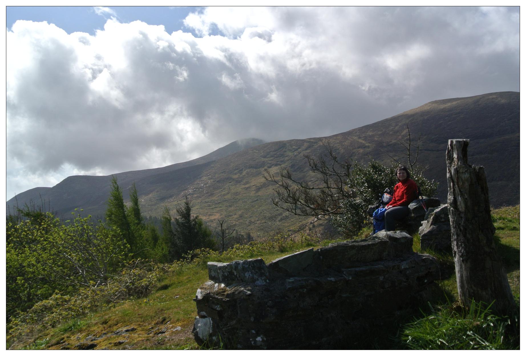 On your right a shallow boggy valley and the Tullybrannigan river separates Tollymore Forest and the Drinns from the lower slopes of Slievenabrock.