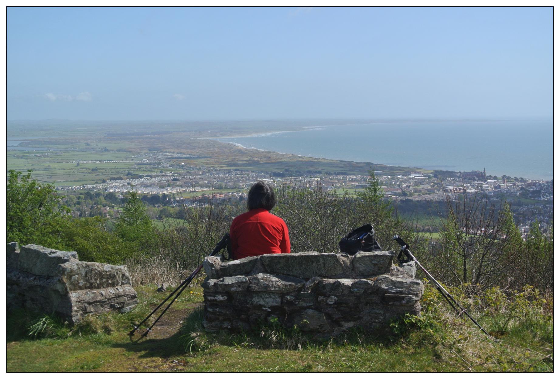 Half way along the valley you turn left on to the Drinnahilly mast access road, re-entering the forest and zig-zagging as you climb to the high point. Here you will enjoy a complementary view to that at Curraghard, with Tollymore, the Drinns, Newcastle and Dundrum Bay laid out below you.